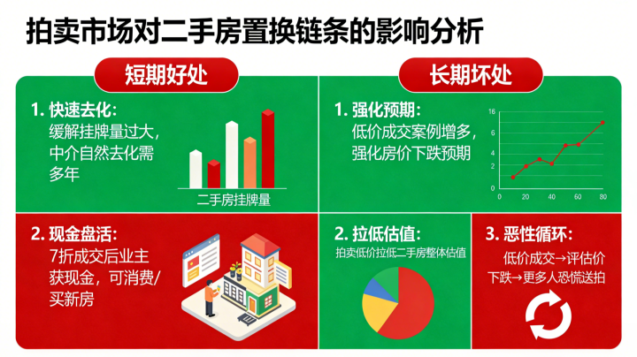 坏处:它强化了“房价下调”的预期。当越来越多廉价成交案例出现,这些数据就成了压价的兵器:“你看拍卖皆这个价了,你挂那么高怎样可能卖掉?”最终,拍卖市集的廉价会拉低总计二手房估值,酿成 “廉价成交 → 评估价下调→ 更多东谈主狂躁性送拍” 的恶性轮回。
