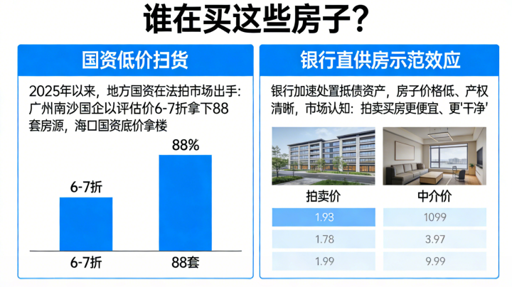 银行也在加快处理手里的抵债金钱,这些屋子价钱低、产权了了。这解释了市集:通过拍卖买房,不仅低廉,还可能比从中介手里买更“干净”。