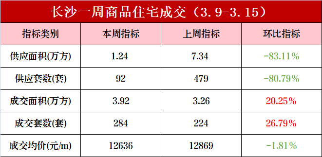 新址阛阓方面,上周(3.9-3.15)长沙内五区(含高新区、长沙县托管区域)一手住宅成交284套、3.92万方,成交均价12636元/㎡。供应上,一手住宅本周新增92套、1.24万方。