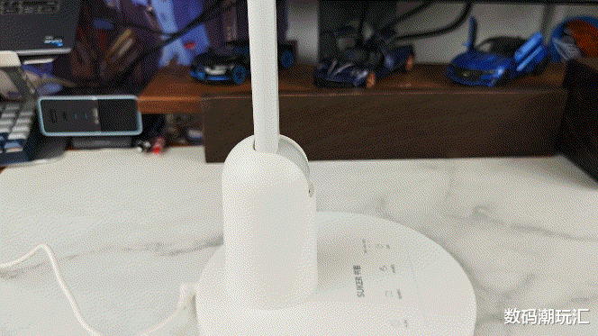超长的灯臂还能把底座挤在桌角,腾出桌面中央空间放册本、文具,小书桌也能整整都都,这点对小户型家庭太友好了。