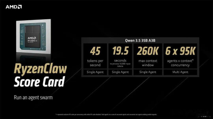 RyzenClaw旅途基于Ryzen AI Max+系统,配备128GB搭伙内存,AMD十分建议为此用例预留96GB动作可变显存。开动Qwen 3.5 35B A3B模子时,该树立可达到约45 tokens/秒的速率,贬责10,000个输入token约需19.5秒,6686体育官方网站撑合手260K token的崎岖文窗口,并可同期开动多达六个代理。AMD将此定位为可在挥霍级硬件上进行"代理集群"推行。