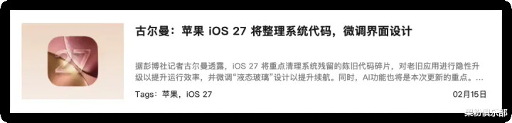 但现在来看,iOS 27 并不会是一个侧重于功能更新的系统版块。