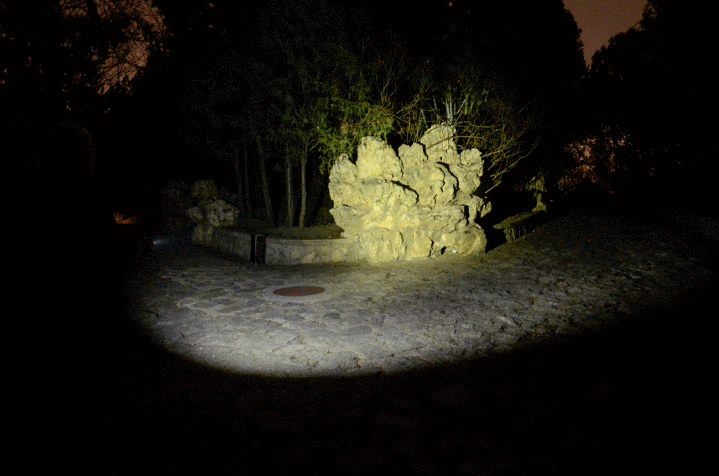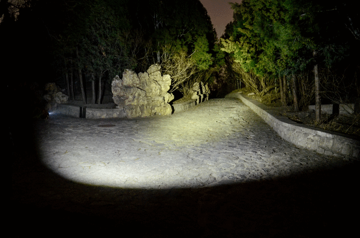 聚光位正白光色温,最大光通量为1000lm,中心亮度高,酿成正圆形的光斑,最远照明距离达到265米,泛光区酿成支持照明,辉煌的连续性、通透性很好。