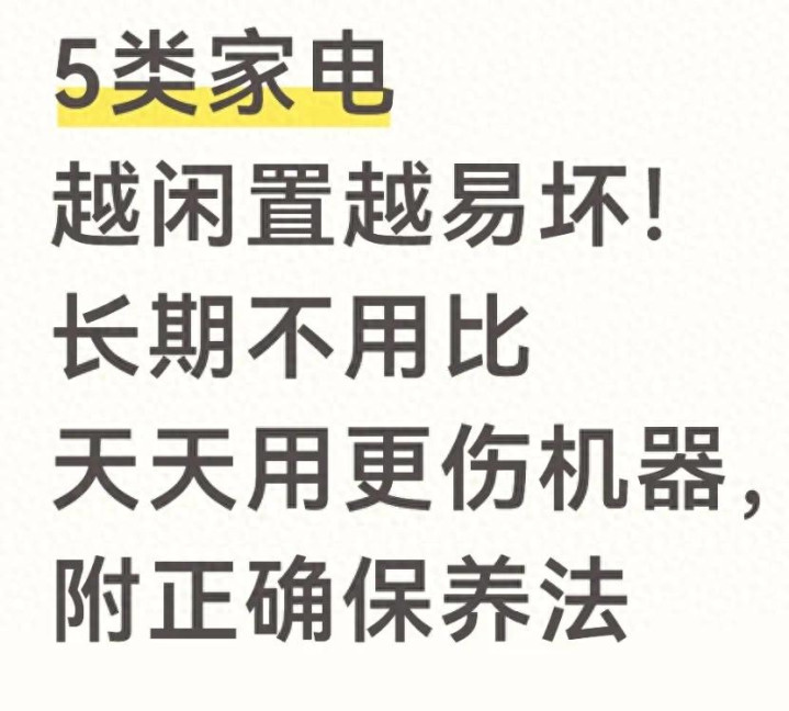 除了以上5种家电,电烤箱、清水器、吸尘器等电器,也王人怕永久闲置,掌合手通用留意原则,能延迟悉数家电的寿命: