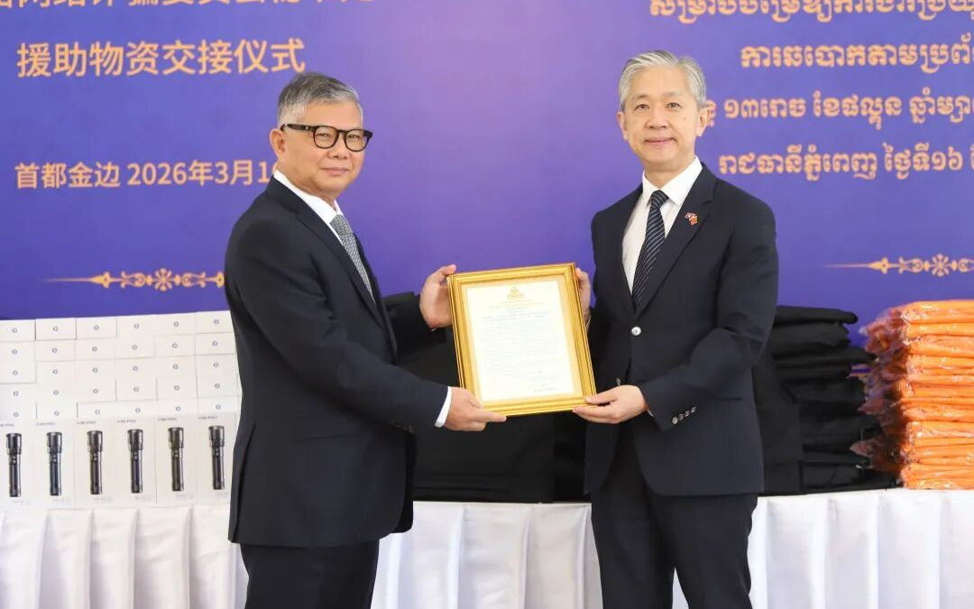 新京报讯据中国驻柬埔寨大使馆音信,中国公安部向柬埔寨打击汇集应用委员会文告处援助物质吩咐典礼3月16日在金边举行。柬国务大臣柴西纳列、中国驻柬大使汪文斌出席并致辞。