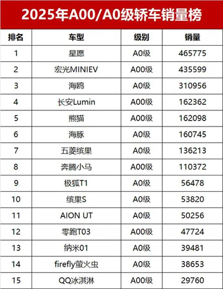 与此同期,阛阓也在发生变化。乘联会数据涌现,2025年A00级纯电动车销量达103.6万辆,A0级纯电销量132.3万辆,两者共计超235万辆。但阛阓时势较着分化,头部效应显赫。五菱宏光MINIEV以43.56万辆稳居A00级首位,拿下52.3%的阛阓份额;祥瑞星愿以46.58万辆登顶A0级销量榜首。而部分车型销量出现下滑,一些尾部品牌阛阓空间被进一步压缩。耗尽者的遴荐也正在分化,一部分东说念主转向空间更大、续航更长、设立更丰富的微型SUV或轿车,另一部分东说念主则被更高端的新势力车型诱惑。中国动力报的报说念指出,A0级电动车阛阓快速回暖的同期,居品力也在提高,续航突破500公里、智能设立越级成为新卖点。