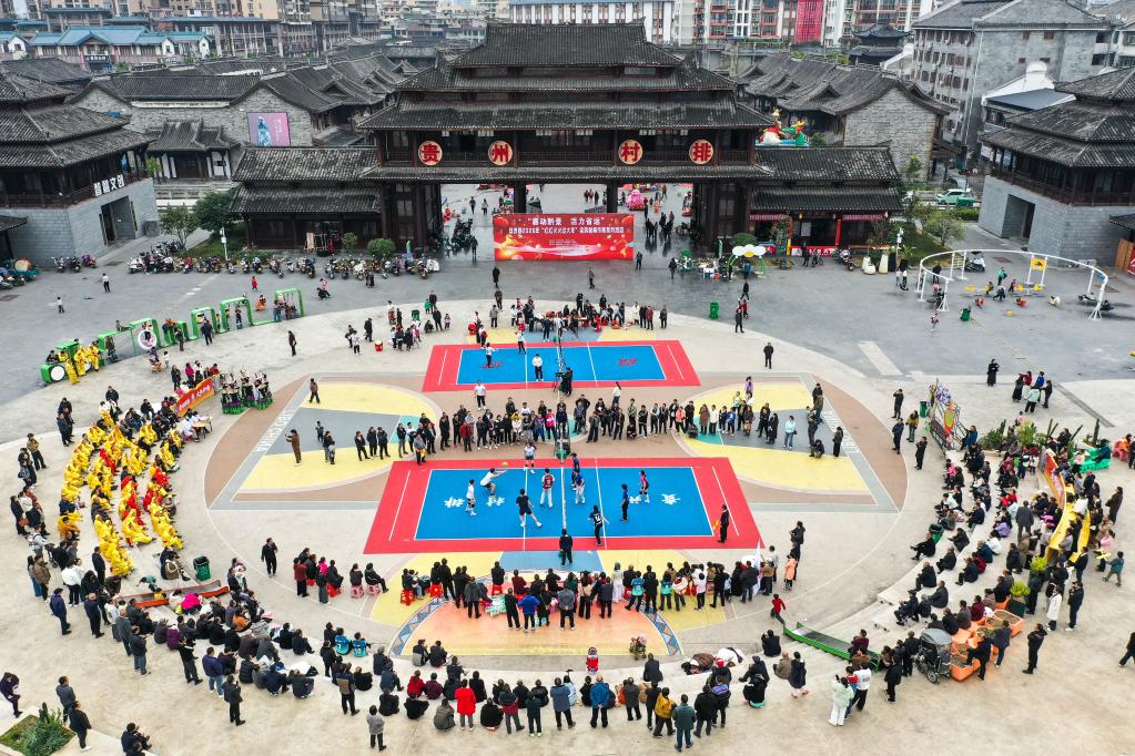 春节时辰,贵州荔波乡村气排球联赛(简称“村排”)在黔南州荔波县举行小组赛。新华社记者 杨文斌 摄