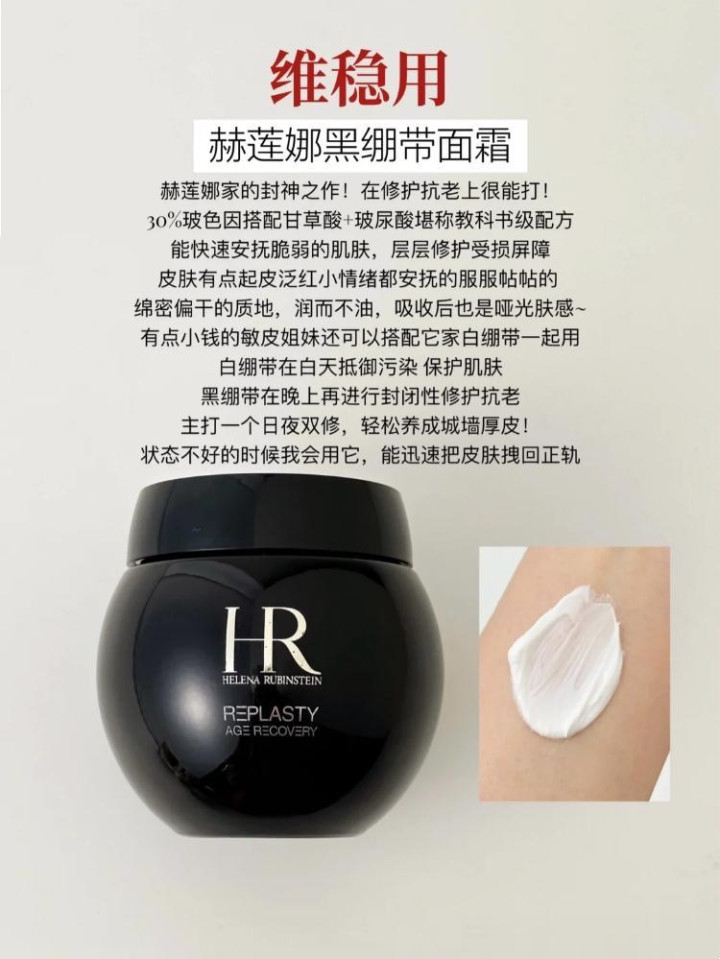 黑绷带面霜可以说是老牌修护高手了,升级版告成一个浓度狂飙,告成把玻色因干到了50%,这浓度升迁确乎够猛,号称“玻色因Plus”,敏肌的姐妹可以耳后测试再上脸,得当点总没错。