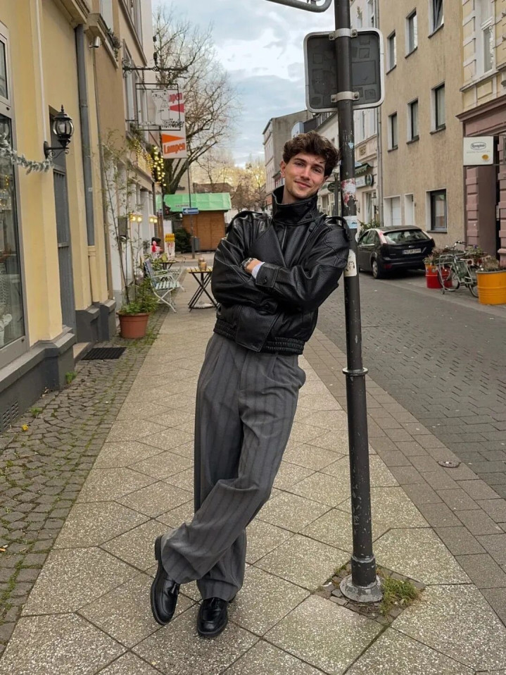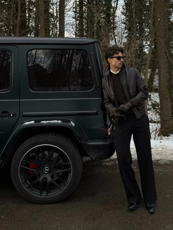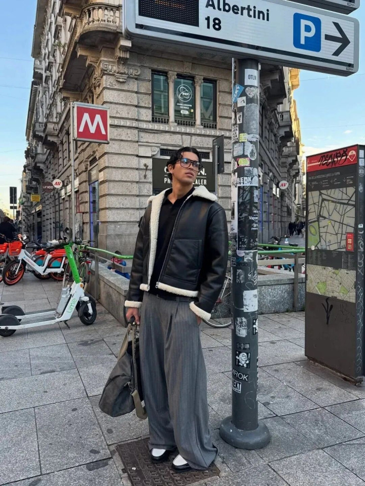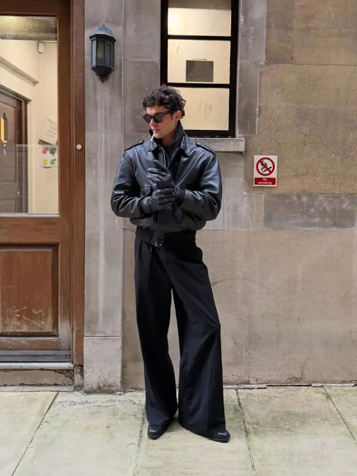 许多东说念主合计皮衣只可配破洞牛仔裤走摇滚风,其实皮衣 + 西装裤才是果真的“雅痞”天花板。在天气更冷的场合,选一件外相外衣,下身配一条健硕的西装裤。这种上重下轻的视觉对比,6686能有用幸免冬日肥美。