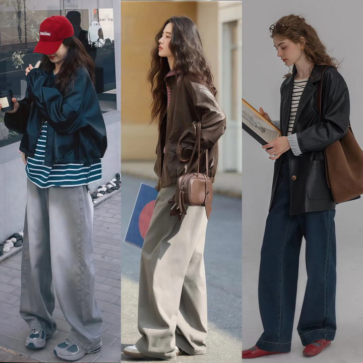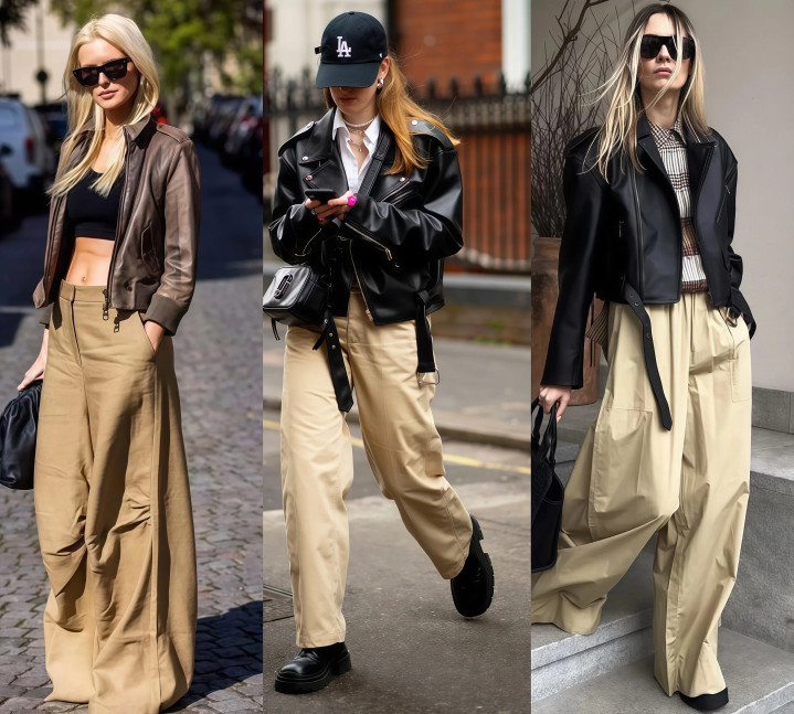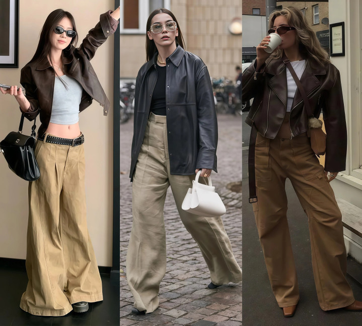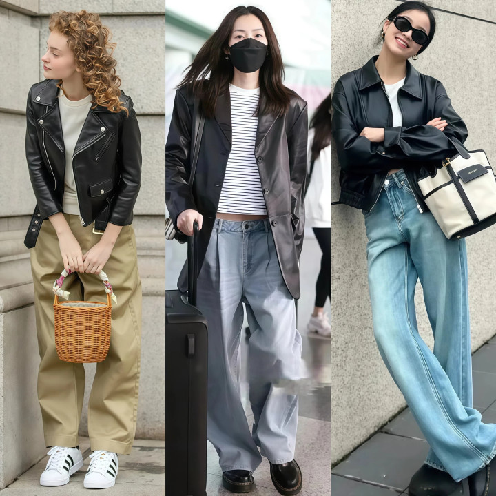 Part four 阔腿裤+皮衣→闲适风