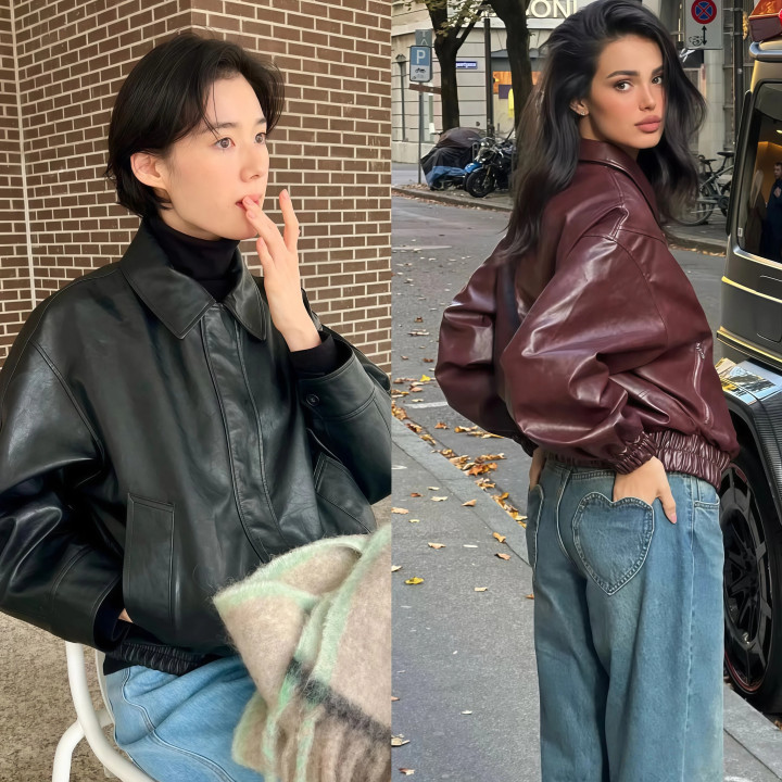过长的皮衣千万别碰,下摆盖过胯部之后,上半身的比例就容易被拉长,尤其是小个子穿中长款皮衣,压个子的戒指极度显着,是以遴荐短款才是正解。