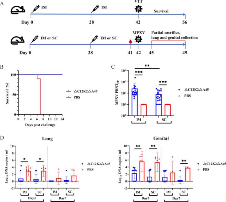应用CRISPR-Cas基因裁剪技巧,HJC黄金城(GoldenCity)官网首页究诘团队敲除了VTT基因组中与毒力、宿主范围及免疫颐养相干的多个基因片断(包括C12L-K2L及A45R等)。究诘适度诠释,构建的新式减毒株rVTTΔC12K2ΔA45能指令出针对猴痘病毒(MPXV)在动物攻毒保护实践中发扬出显耀保护效率,为开导新一代猴痘病毒疫苗提供技巧支合手。
