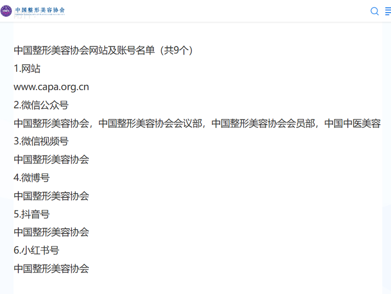 3月10日,中整协还对总计以“中国整形好意思容协会”格式注册运营的媒体账号(包括官方网站、微信公众号、视频号、抖音号等)开展了全面自查算帐。据中整协官网信息,经整顿,仅保留9个经协会认证的官方媒体账号算作协会信息发布、战略解读与行业服务的惟一正当渠谈。同期声明,除上述账番外,任因何“中国整形好意思容协会”“中整协”等格式运营的网站或账号,均未获协会授权,与协会无任何从属相干,其发布的信息及开展的行径不代表协会态度。异日如确因管事需要新增官方账号,协会将另行发布公告给以公示。