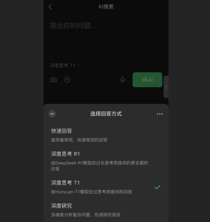 许多早期分析停留在”它有两种模式”的名义。但到2025年9月,微信AI搜索也曾完成了一次质的跃升——从双模式翰墨搜索,进化为集四种推理模式、多模态输入、历史纪录与酬酢共享于一体的玄虚AI进口。