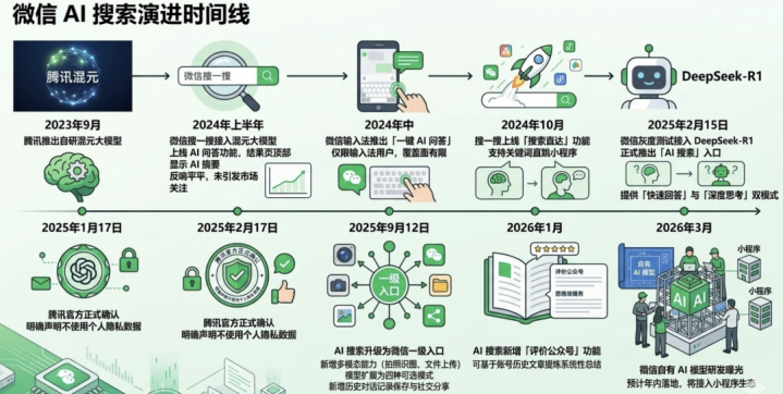 许多东说念主觉得微信AI搜索是2025年2月斯须冒出来的新物种。但要是拉长不雅察线,你会发现这件事早有伏笔,且迭代速率远超外界感知。
