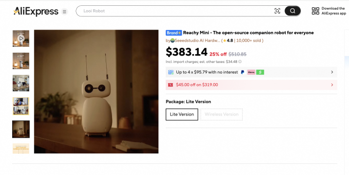 ReachyMini遴荐了阿里旗下跨境平台速卖通AliExpress。其官方制造商、中国开源硬件供应商SeeedStudio文书,ReachyMini于3月16日在速卖通追究发售。这亦然这款明星居品在栽种者圈小范围测试后的追究大范畴售卖,且均为现货。