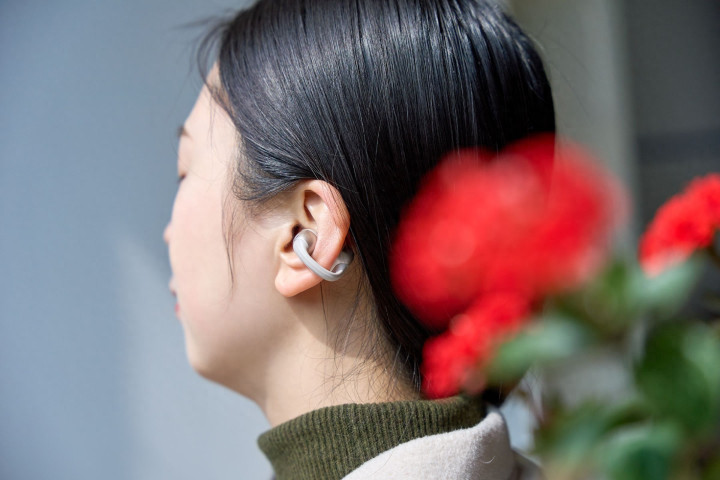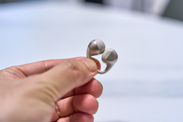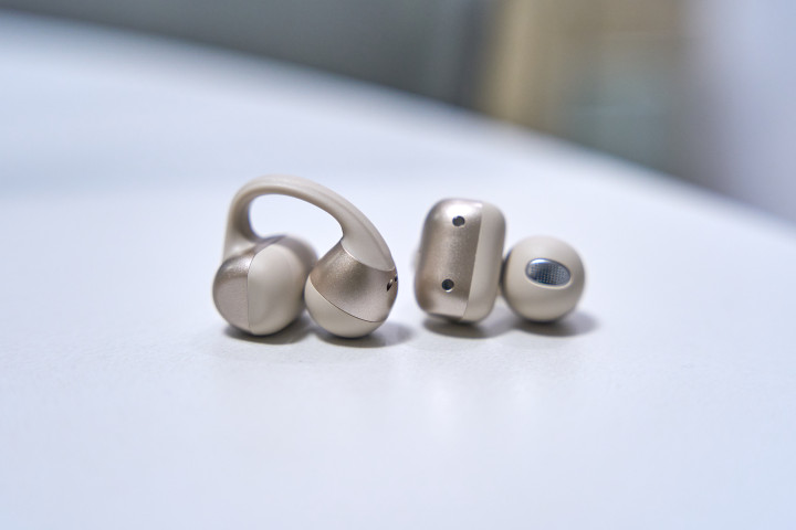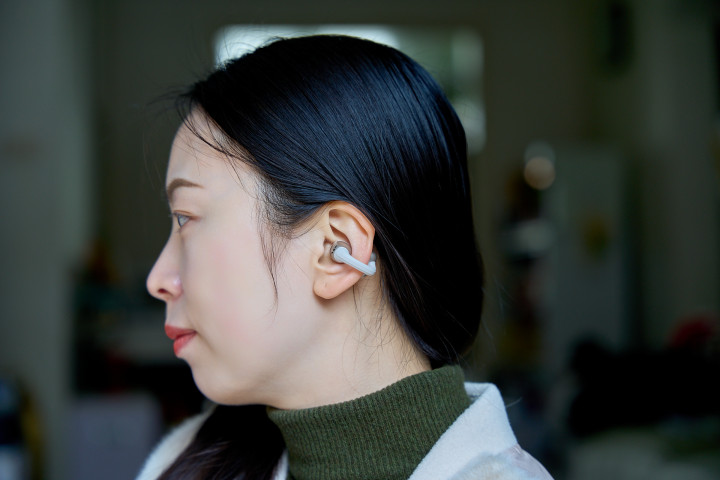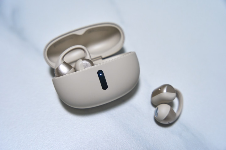 其他部分为哑光塑料材质,通体无按键,在外壳凹凸两个侧面是触控区域,双指“捏一下”的操作逻辑很方便也防误触,上手零门槛。